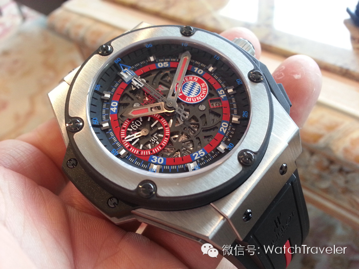 2013年巴塞尔展推出并红极一时的宇舶时间机器“拉法拉”。我的腕和手也显小了。