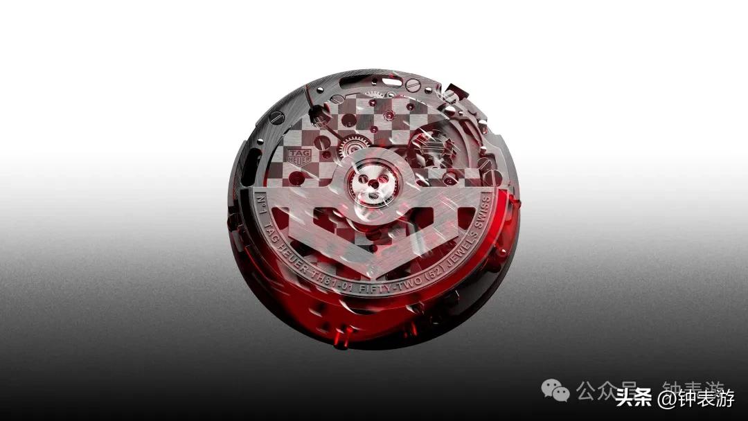 TH81双追针复杂机芯由泰格豪雅天才的机芯总监Carole Kasapi带领的团队和著名的瑞士高级机芯厂Vaucher Manufacture Fleurier联袂打造,堪称机械计时领域的又一机芯艺术品。TH81双追针复杂机芯还稀有地使用了5级钛金属制造,所以机芯本身更轻更坚固,使得这枚机芯也成为泰格豪雅历史上最轻的复杂计时机芯。超过350个部件机芯的打磨、倒角和细节之处也做到了尽善尽美,螺丝在内的很多部件采用黑色抛光工艺处理,和腕表上多处红色元素结合,活力十足。双秒追针计时就是为追逐和速度而生的,泰格豪雅让这一高深的机械计时功能更加动感和激情。