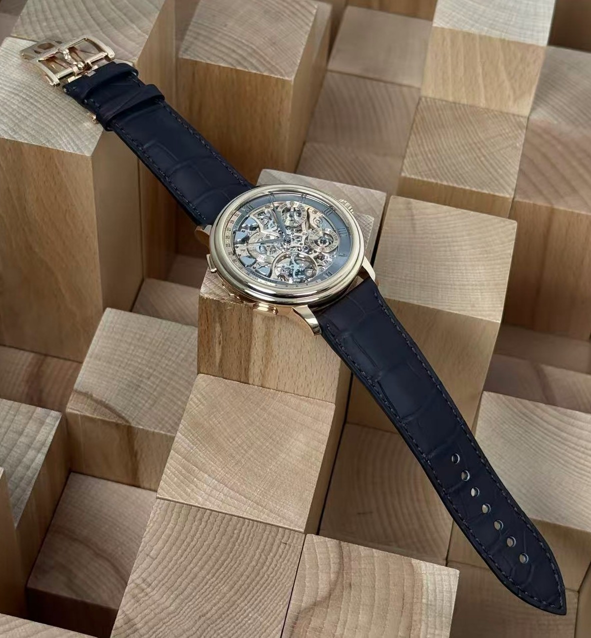 在未听其旋律音律之时,第一眼早已被它的惊鸿身姿所吸引。懂表的人都知道,这样一枚远远闪烁着超高级感和柔和眩光的腕表,从表壳到机芯到每一个配件,都得经过怎样的精工细制和漫长耗时的打磨与雕琢?