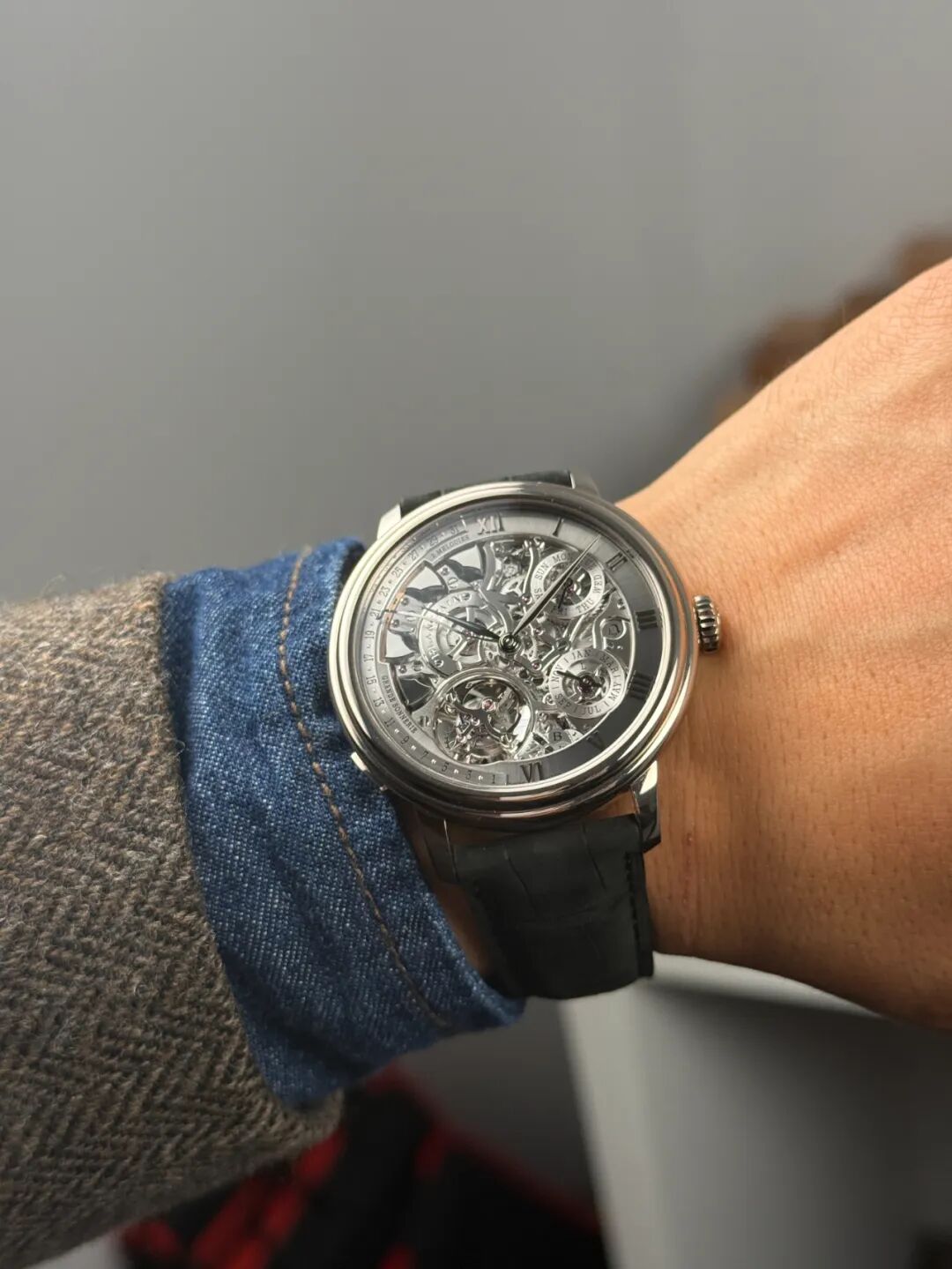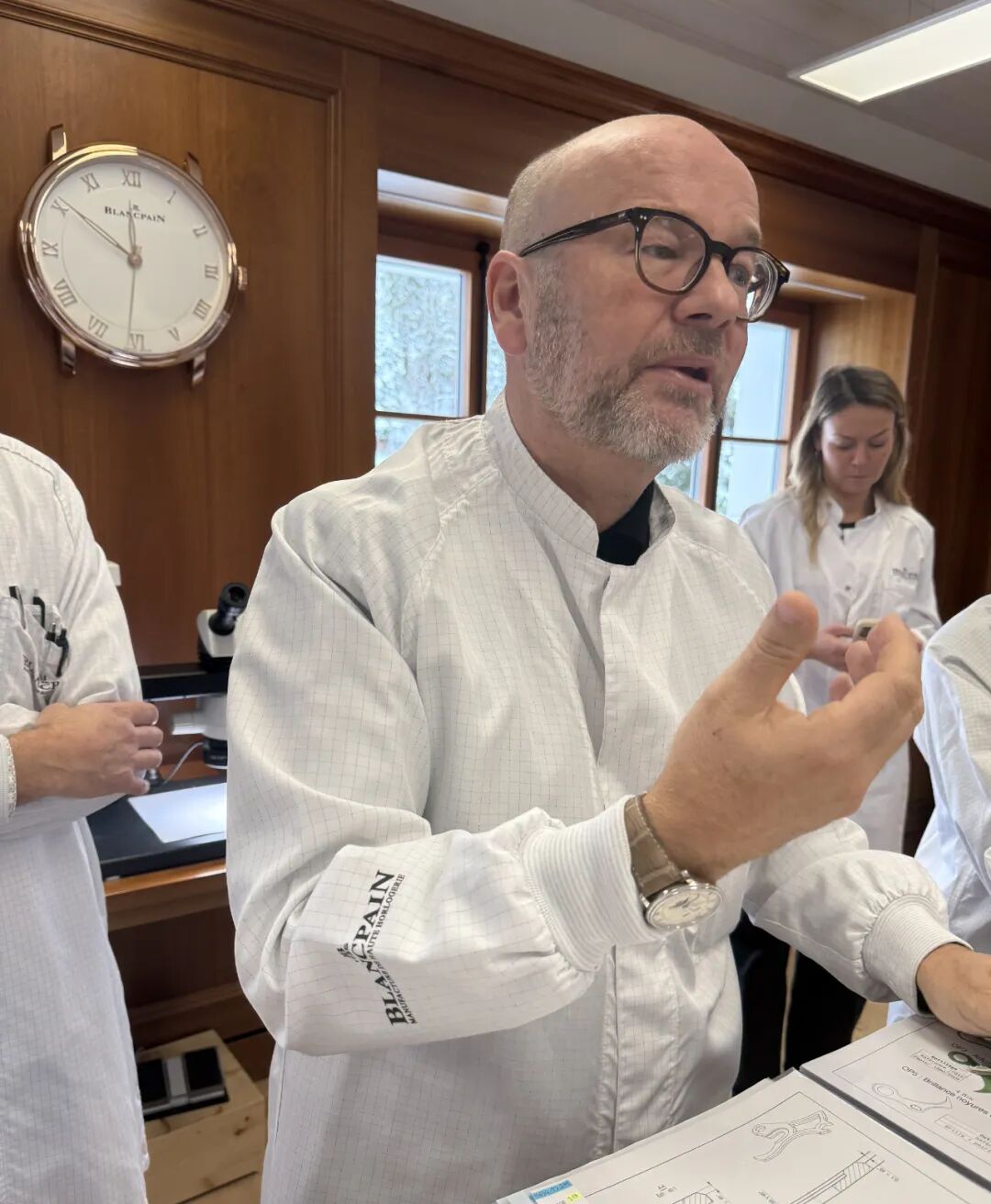2025年11月,受宝珀总部邀请,我和几位媒体朋友一道,迎着漫天鹅毛飞雪,来到已经被厚厚白雪覆盖的瑞士汝拉山谷Brasuss小镇、宝珀的制表工坊,在宝珀全球总裁马克海耶克、 宝珀副总裁兼产品开发主管Christian Lattmann、 宝珀中国副总裁廖嘉信先生、 宝珀“大音乐家”双旋律四音四锤大小自鸣超复杂腕表 (宝珀15GSQ)核心团队成员和多位宝珀总部员工的陪同下,马不停蹄,前前后后整整用了半天的时间,详细参研和感受 宝珀“大音乐家” (宝珀15GSQ) 从A-Z、从起始到成表的完整研发和创制过程。